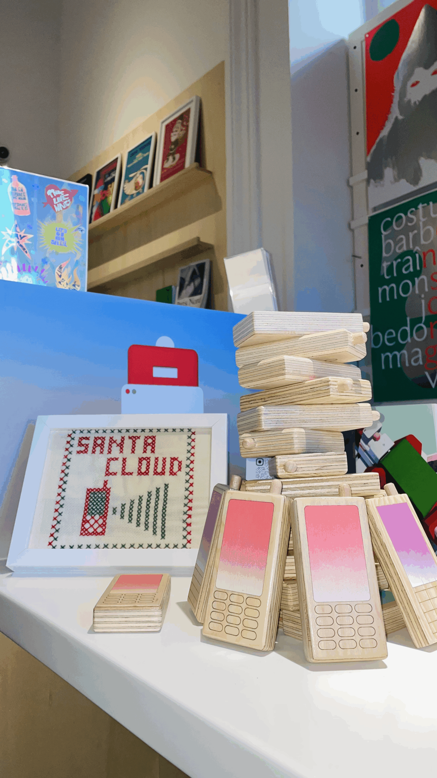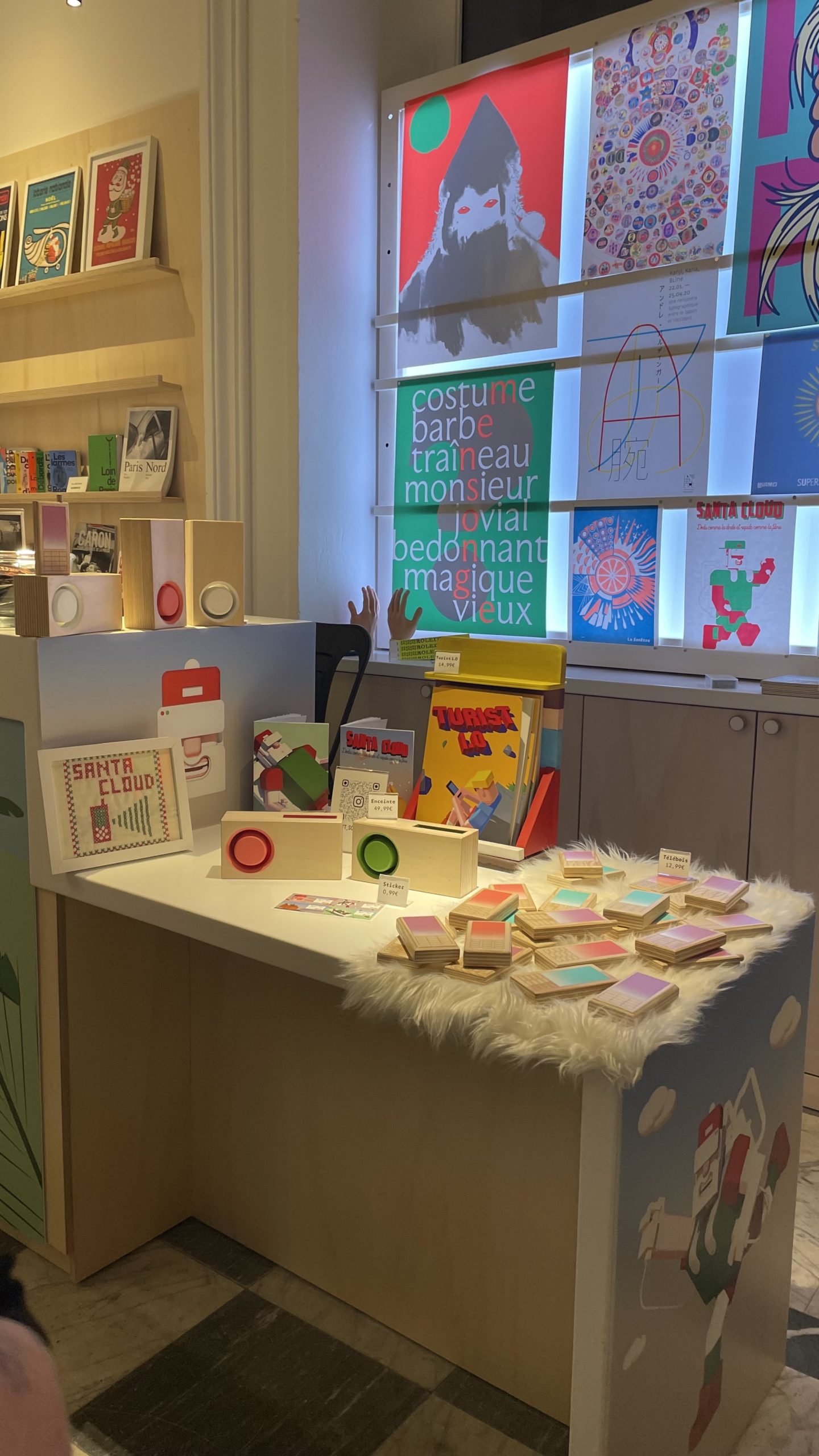 Son “Santa Cloud” est “dodu comme la dinde et rapide comme la fibre” et il le décline en affiches, carnets et stickers et autres créations étonnantes en bois, en utilisant le même logiciel de conception 3D que celui dont il se sert pour concevoir des meubles (notre homme est menuisier “dans le civil”…).